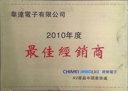 • 2010年度獲得最佳經(jīng)銷商獎